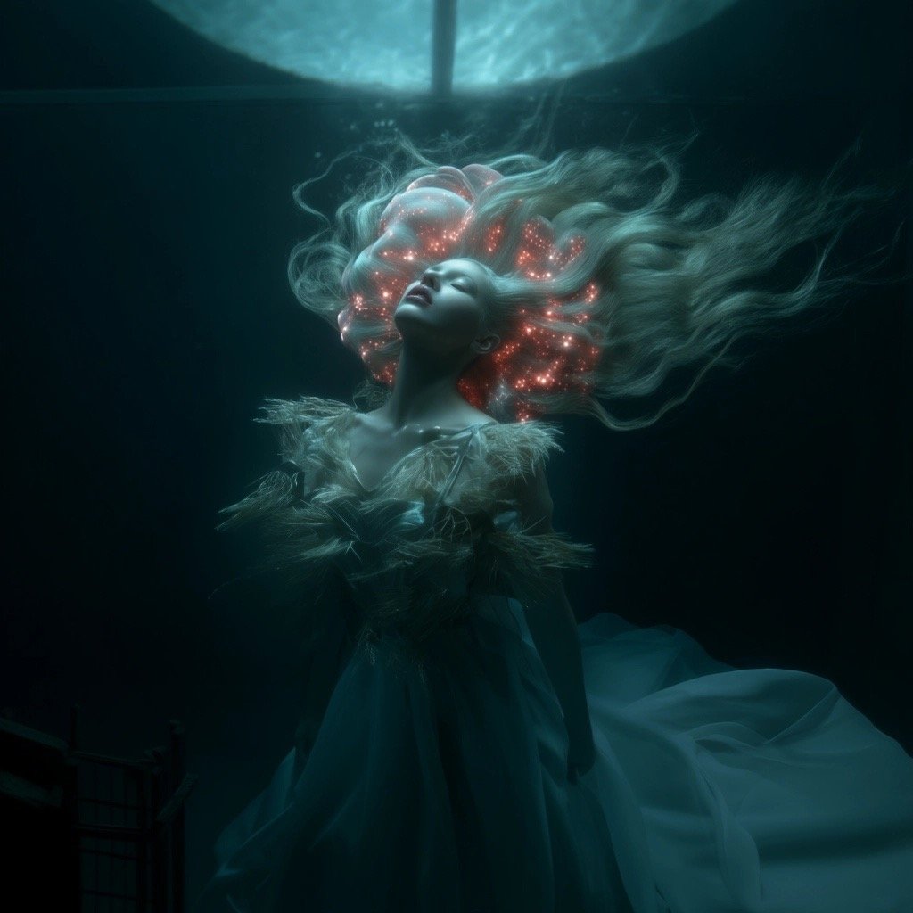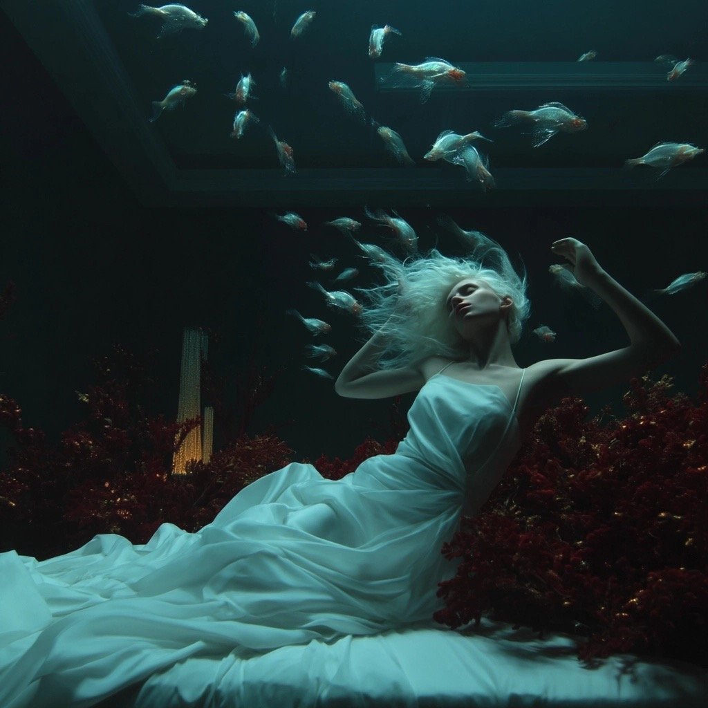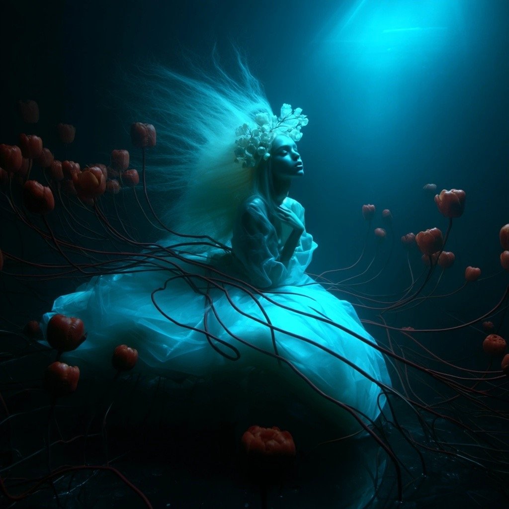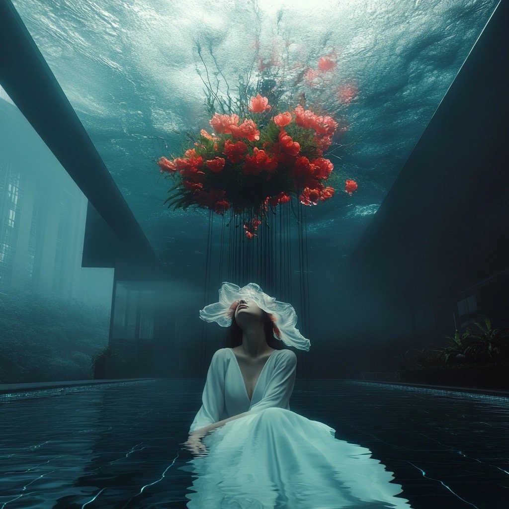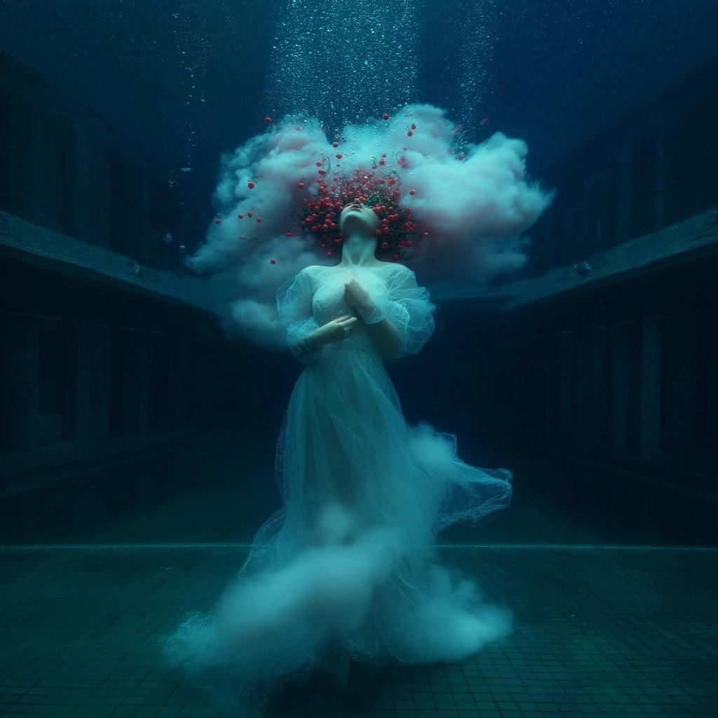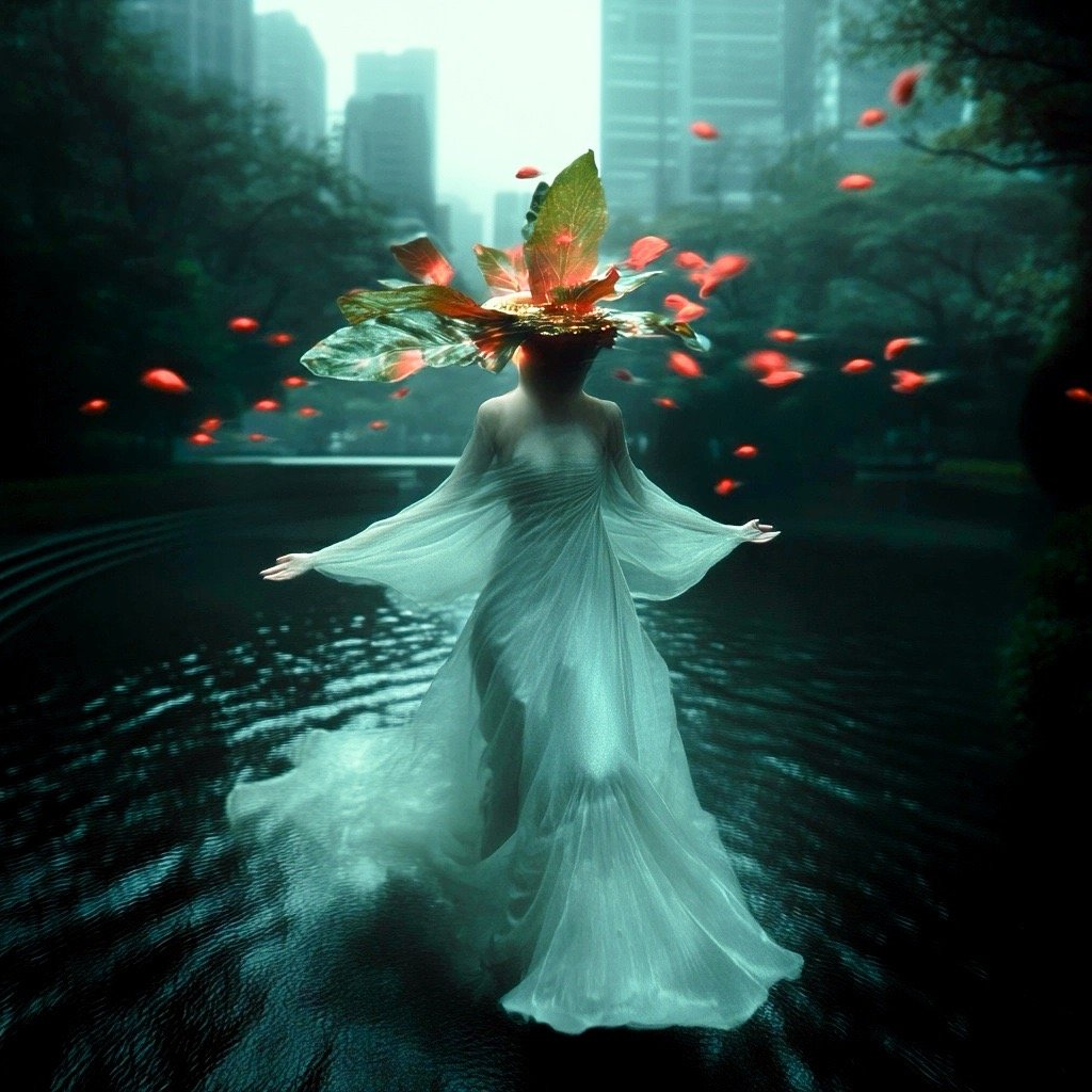 Αντλώντας από μυθολογικά αρχέτυπα των νυμφών του νερού και των πνευμάτων του τόπου, η έκθεση εξερευνά τη θηλυκότητα όχι ως υποκείμενο, αλλά ως μια ακατάλυτη δύναμη που επιβιώνει περισσότερο από τις δομές που χτίστηκαν για να την περιορίσουν. Αυτές οι φασματικές παρουσίες περιηγούνται σε δωμάτια όπου η ανθρώπινη φιλοδοξία έχει διαλυθεί σε κρύα και διαρκώς κινούμενα νερά, εκεί όπου το τεχνητό φως τρεμοπαίζει πάνω στην οργανική ανάπτυξη. Είναι μάρτυρες της παροδικότητας, ενσαρκώσεις αυτού που παραμένει όταν όλα τα άλλα καταρρέουν.