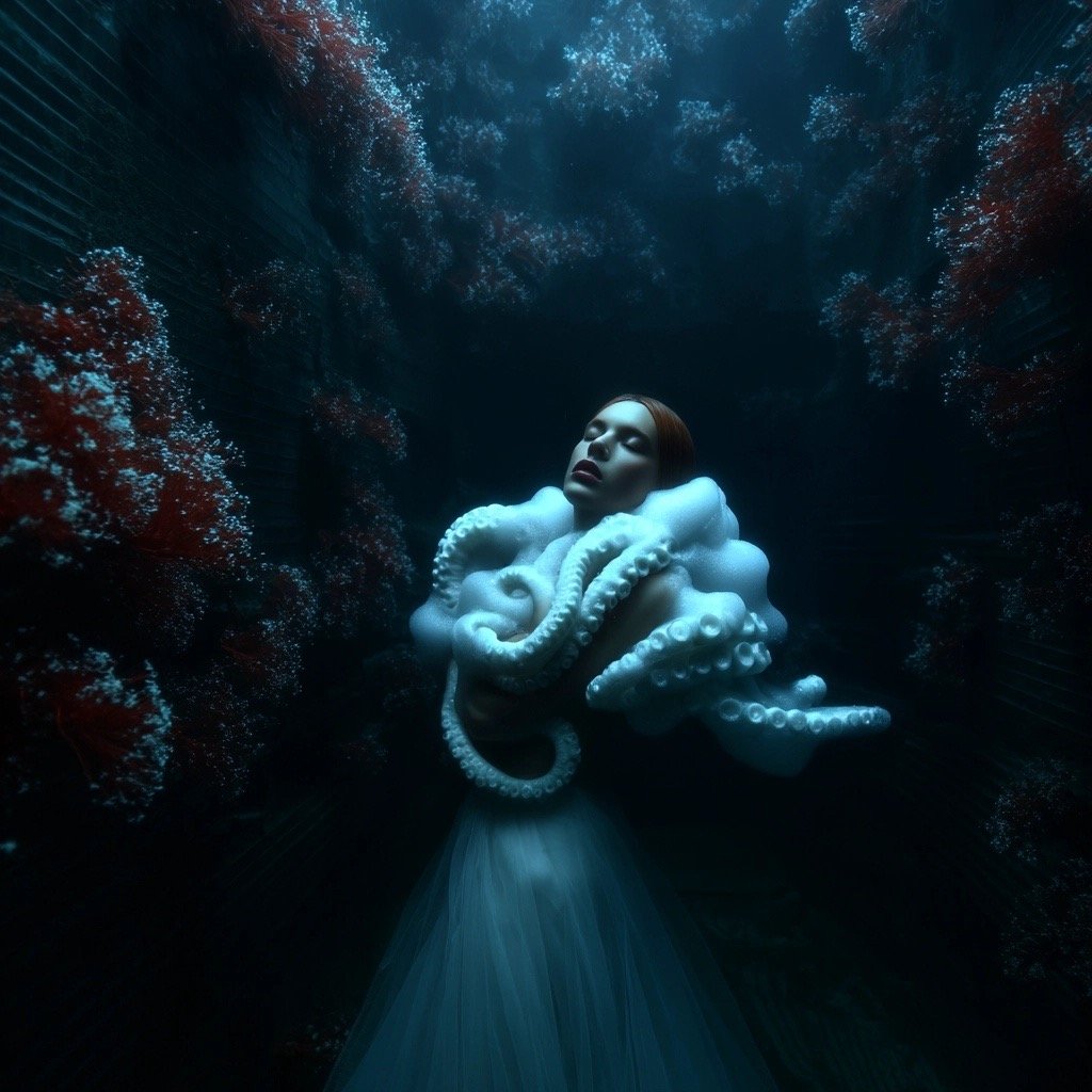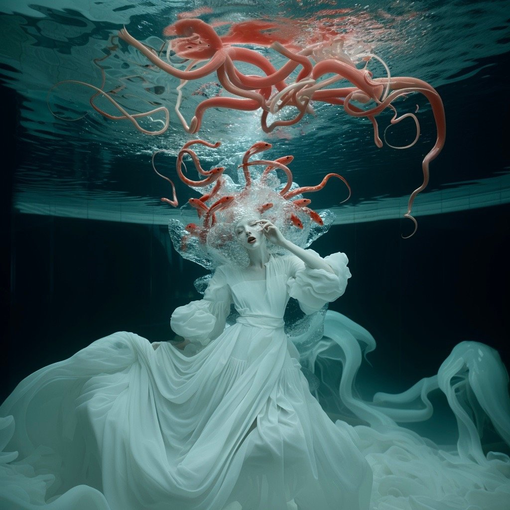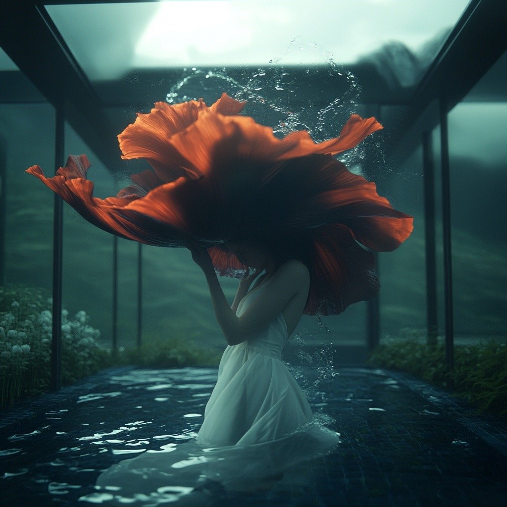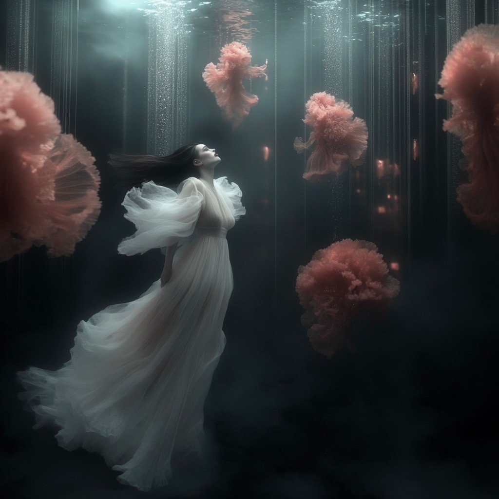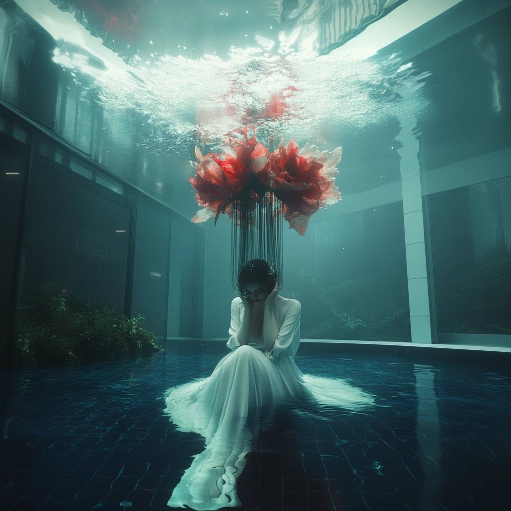 Αντλώντας από μυθολογικά αρχέτυπα των νυμφών του νερού και των πνευμάτων του τόπου, η έκθεση εξερευνά τη θηλυκότητα όχι ως υποκείμενο, αλλά ως μια ακατάλυτη δύναμη που επιβιώνει περισσότερο από τις δομές που χτίστηκαν για να την περιορίσουν. Αυτές οι φασματικές παρουσίες περιηγούνται σε δωμάτια όπου η ανθρώπινη φιλοδοξία έχει διαλυθεί σε κρύα και διαρκώς κινούμενα νερά, εκεί όπου το τεχνητό φως τρεμοπαίζει πάνω στην οργανική ανάπτυξη. Είναι μάρτυρες της παροδικότητας, ενσαρκώσεις αυτού που παραμένει όταν όλα τα άλλα καταρρέουν.