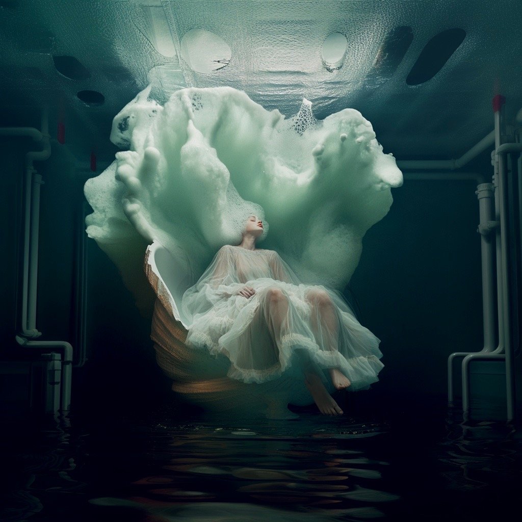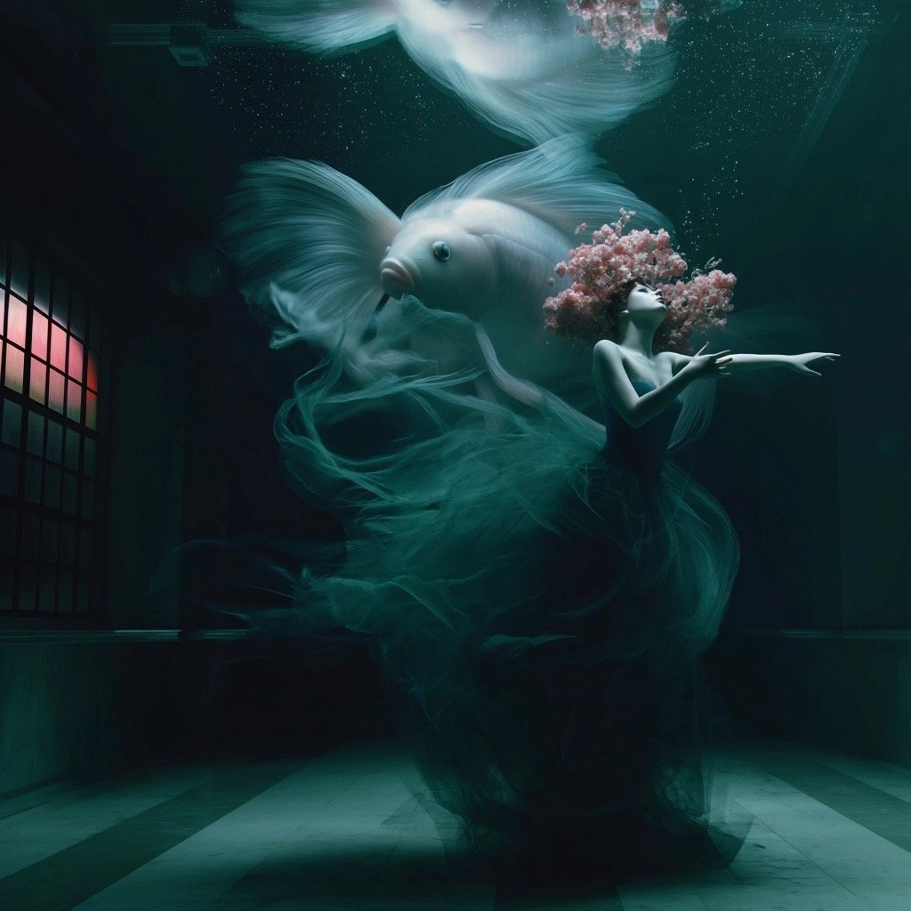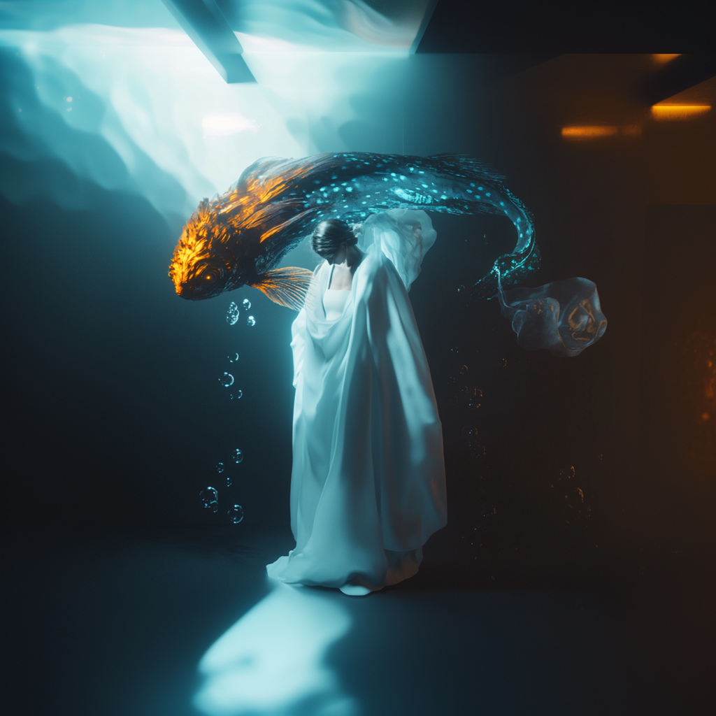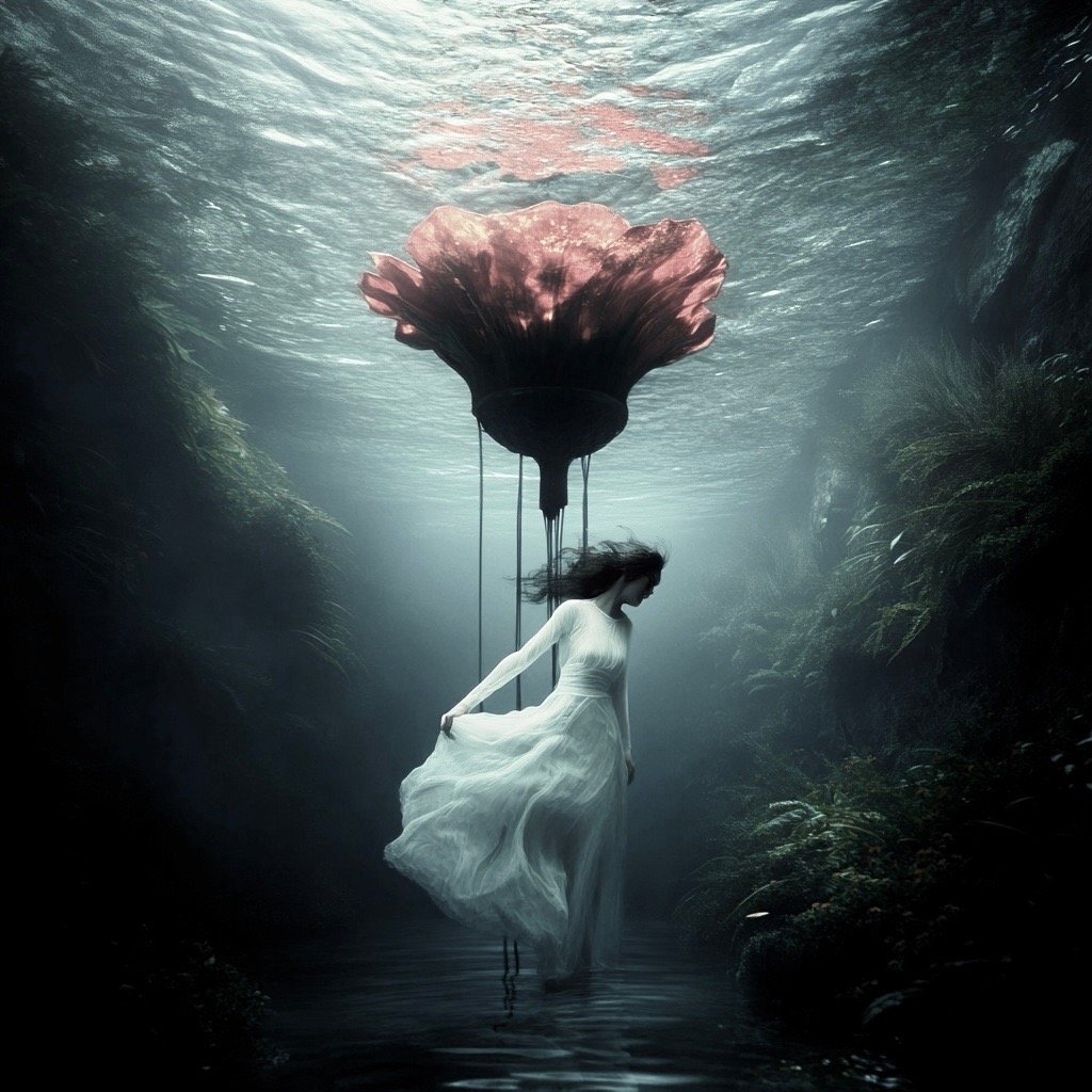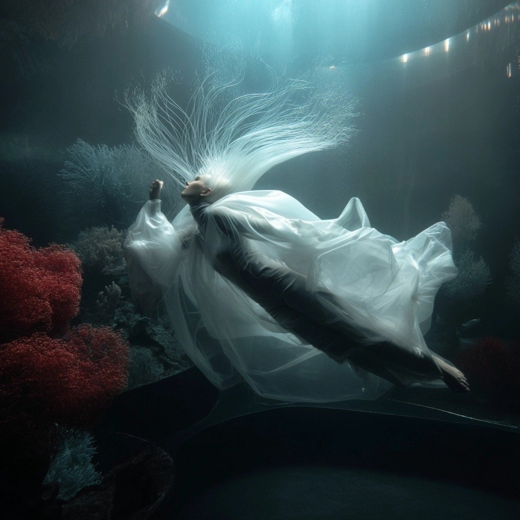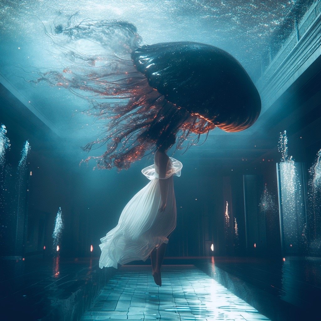 Αντλώντας από μυθολογικά αρχέτυπα των νυμφών του νερού και των πνευμάτων του τόπου, η έκθεση εξερευνά τη θηλυκότητα όχι ως υποκείμενο, αλλά ως μια ακατάλυτη δύναμη που επιβιώνει περισσότερο από τις δομές που χτίστηκαν για να την περιορίσουν. Αυτές οι φασματικές παρουσίες περιηγούνται σε δωμάτια όπου η ανθρώπινη φιλοδοξία έχει διαλυθεί σε κρύα και διαρκώς κινούμενα νερά, εκεί όπου το τεχνητό φως τρεμοπαίζει πάνω στην οργανική ανάπτυξη. Είναι μάρτυρες της παροδικότητας, ενσαρκώσεις αυτού που παραμένει όταν όλα τα άλλα καταρρέουν.