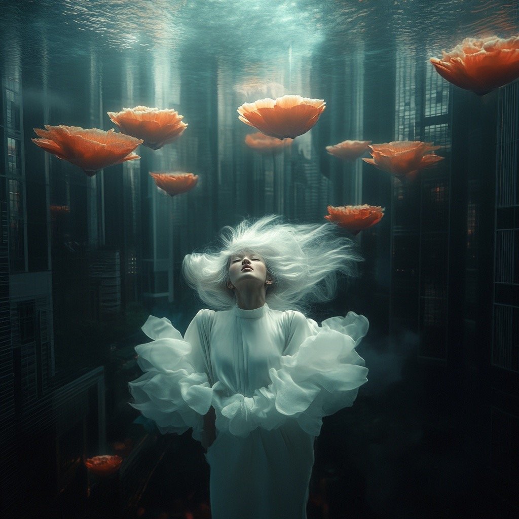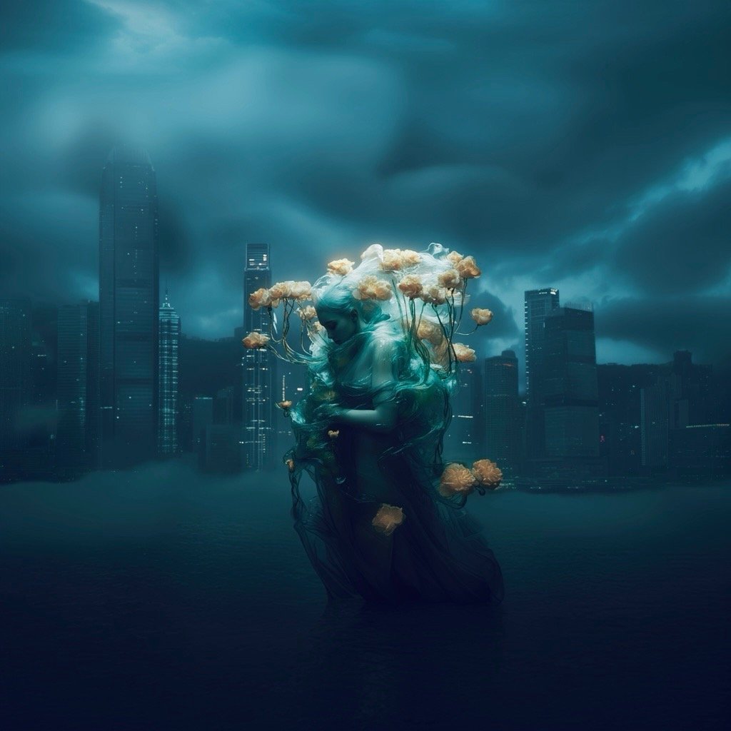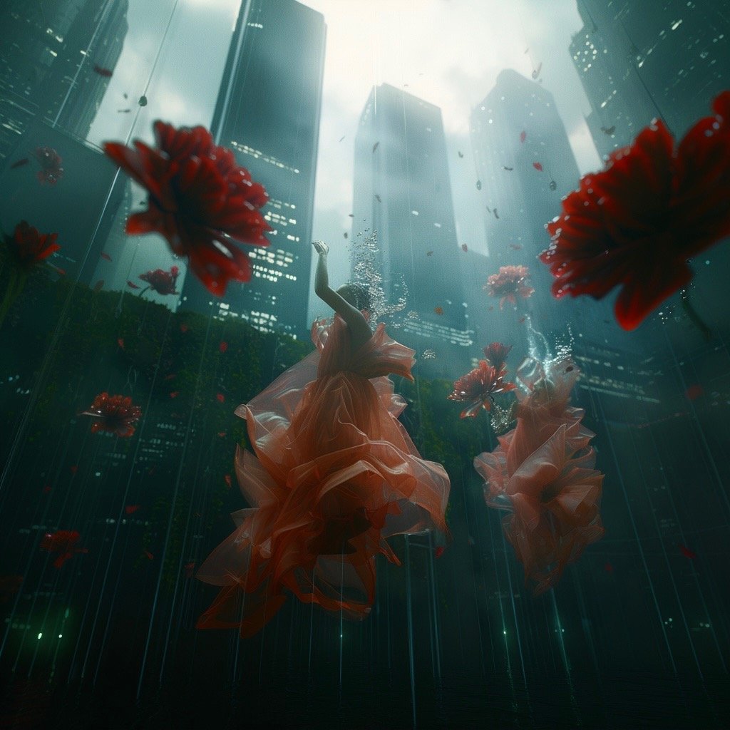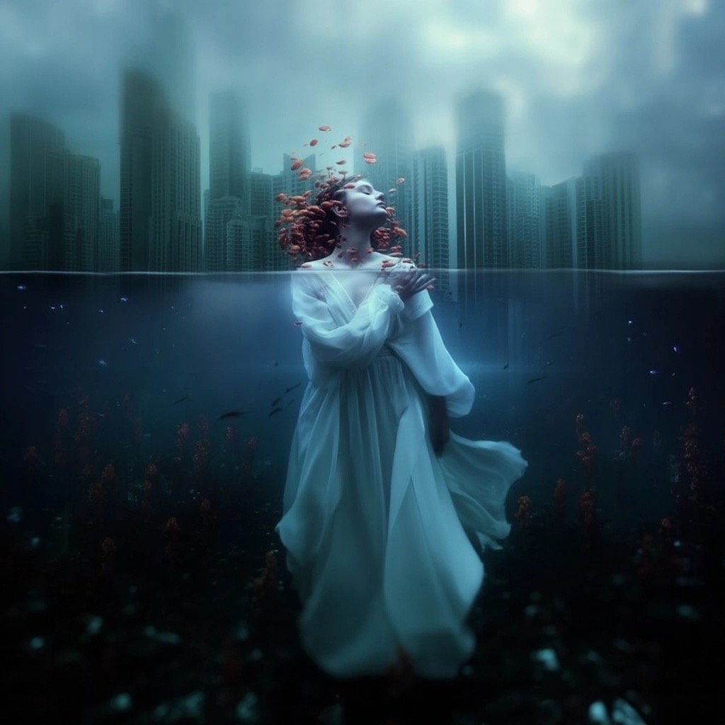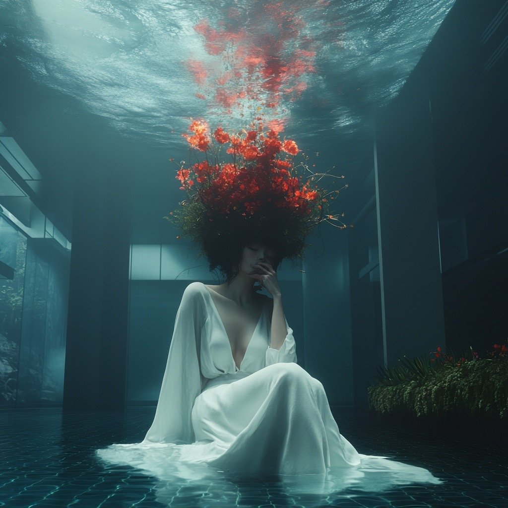 Τα έργα παρουσιάζουν έναν κόσμο μετά το τέλος, όπου τα αρχαία ερείπια και η μελλοντική παρακμή γίνονται δυσδιάκριτα μεταξύ τους. Μέσα σε αυτόν τον μεταιχμιακό χώρο, αυτές οι θηλυκές μορφές αναδύονται ταυτόχρονα ως παρουσία και ως απουσία, κινούμενες μέσα σε εγκαταλελειμμένες αίθουσες με τη σιωπηλή επιμονή του ονειρικού. Αυτές οι μορφές φέρουν απόηχους της Προραφαηλιτικής ζωγραφικής—την ίδια μελαγχολική ομορφιά, την ίδια αίσθηση γυναικών παγιδευμένων ανάμεσα σε δύο κόσμους—ενώ ταυτόχρονα υπάρχουν σε ένα περιβάλλον που υποδηλώνει τεχνολογική κατάρρευση και οικολογική ανάκτηση.