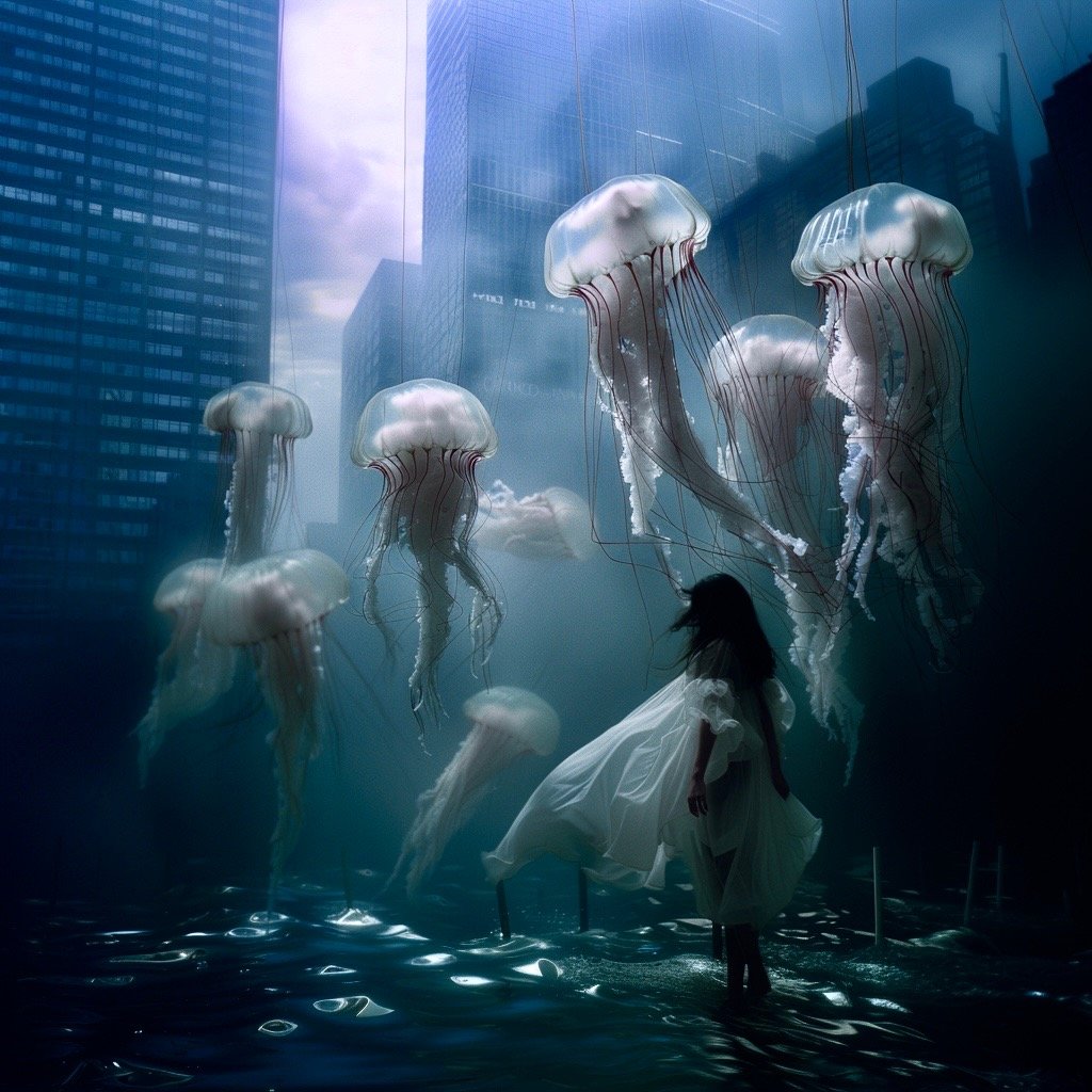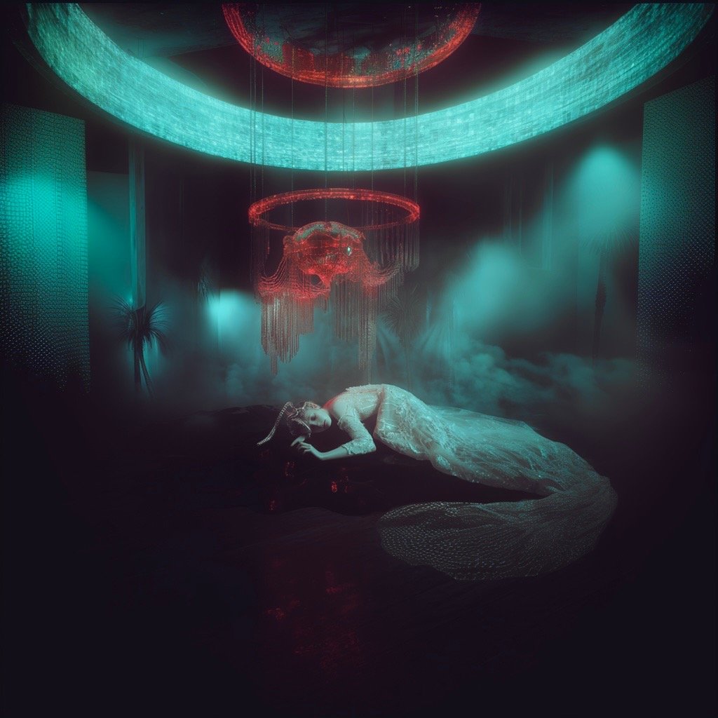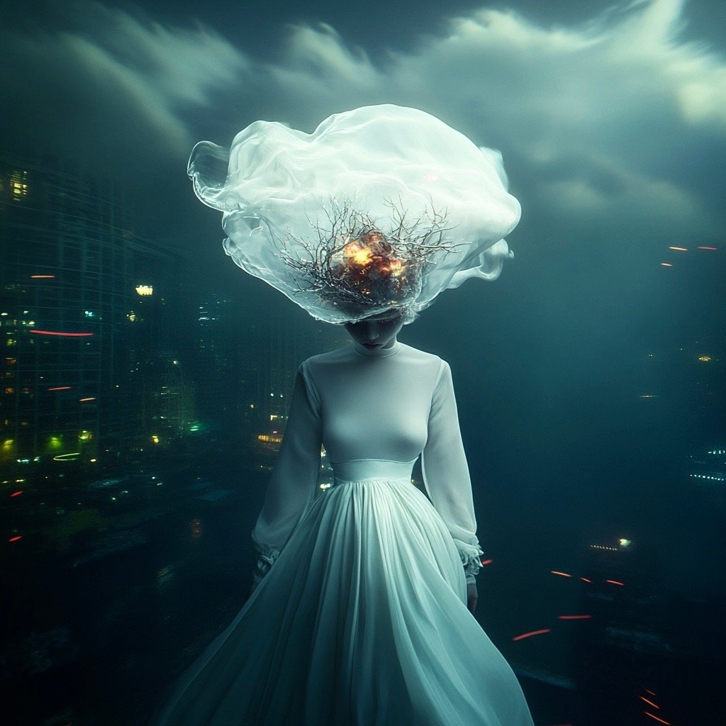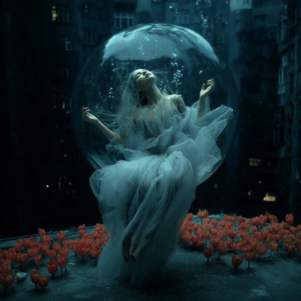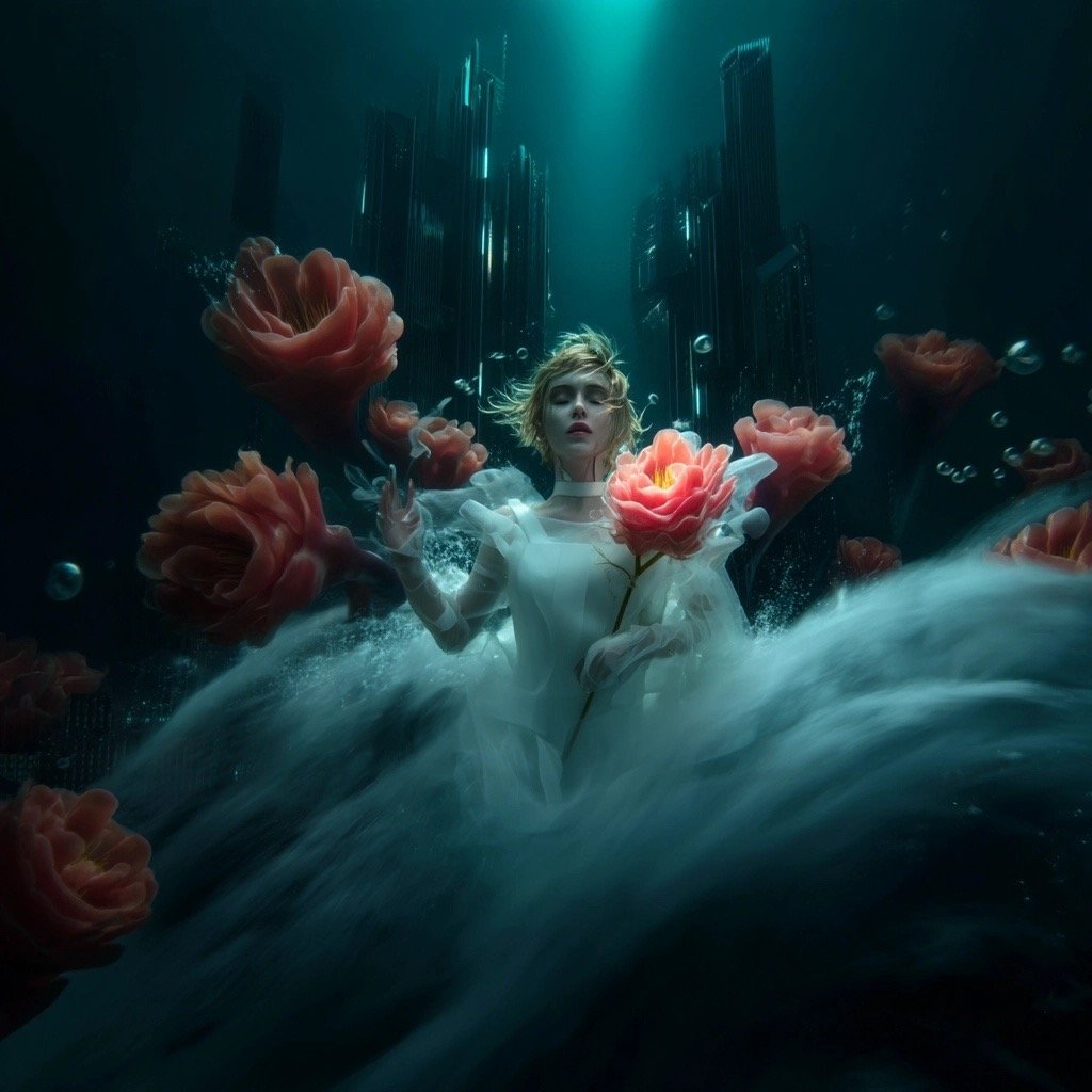 Τα έργα παρουσιάζουν έναν κόσμο μετά το τέλος, όπου τα αρχαία ερείπια και η μελλοντική παρακμή γίνονται δυσδιάκριτα μεταξύ τους. Μέσα σε αυτόν τον μεταιχμιακό χώρο, αυτές οι θηλυκές μορφές αναδύονται ταυτόχρονα ως παρουσία και ως απουσία, κινούμενες μέσα σε εγκαταλελειμμένες αίθουσες με τη σιωπηλή επιμονή του ονειρικού. Αυτές οι μορφές φέρουν απόηχους της Προραφαηλιτικής ζωγραφικής—την ίδια μελαγχολική ομορφιά, την ίδια αίσθηση γυναικών παγιδευμένων ανάμεσα σε δύο κόσμους—ενώ ταυτόχρονα υπάρχουν σε ένα περιβάλλον που υποδηλώνει τεχνολογική κατάρρευση και οικολογική ανάκτηση.