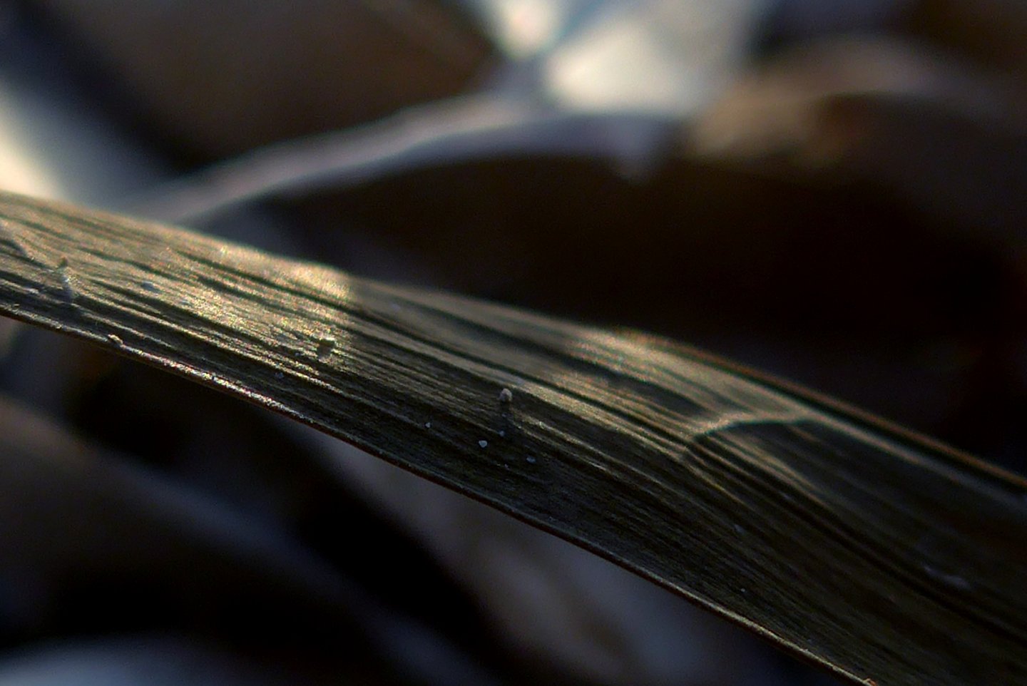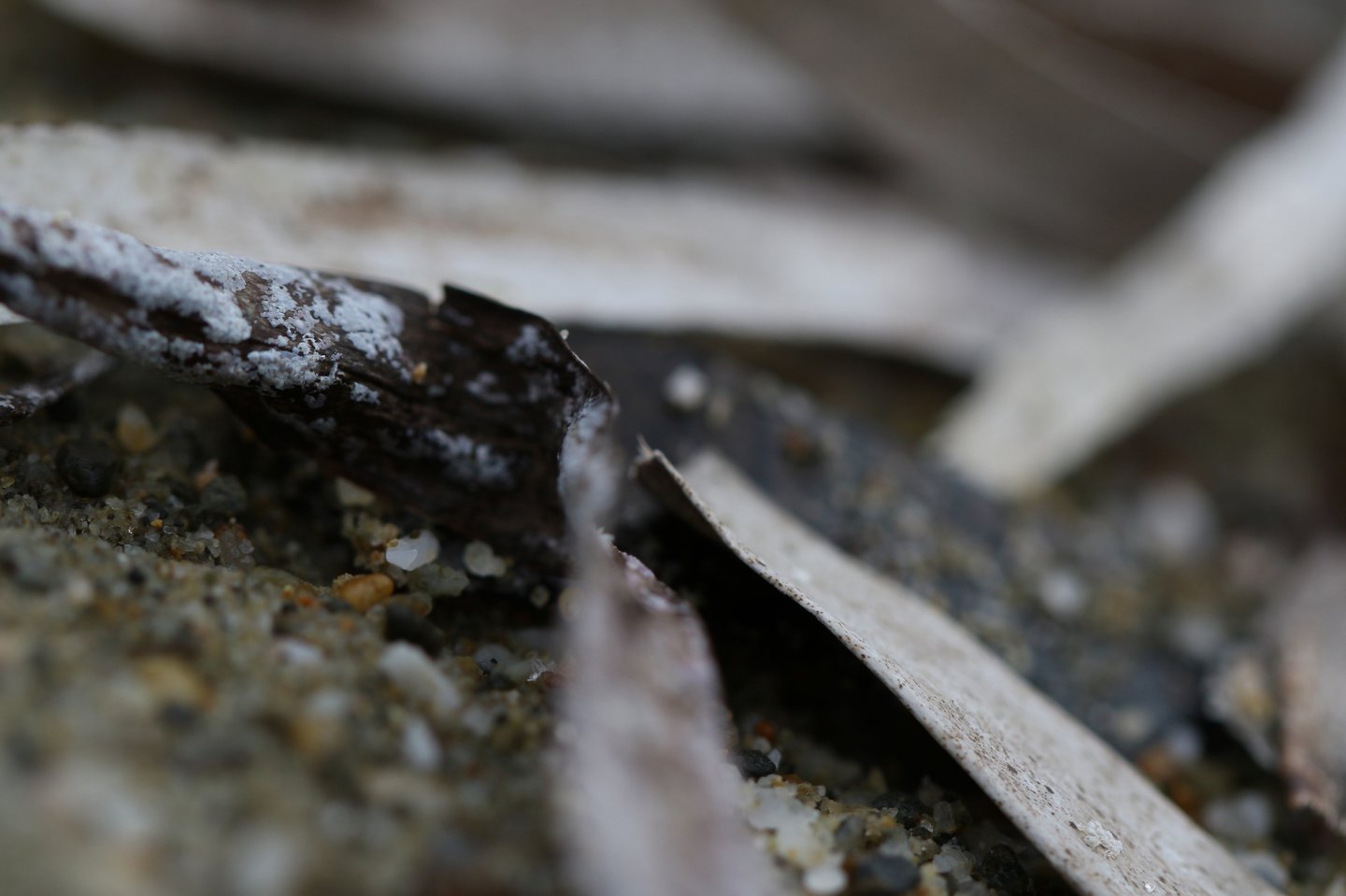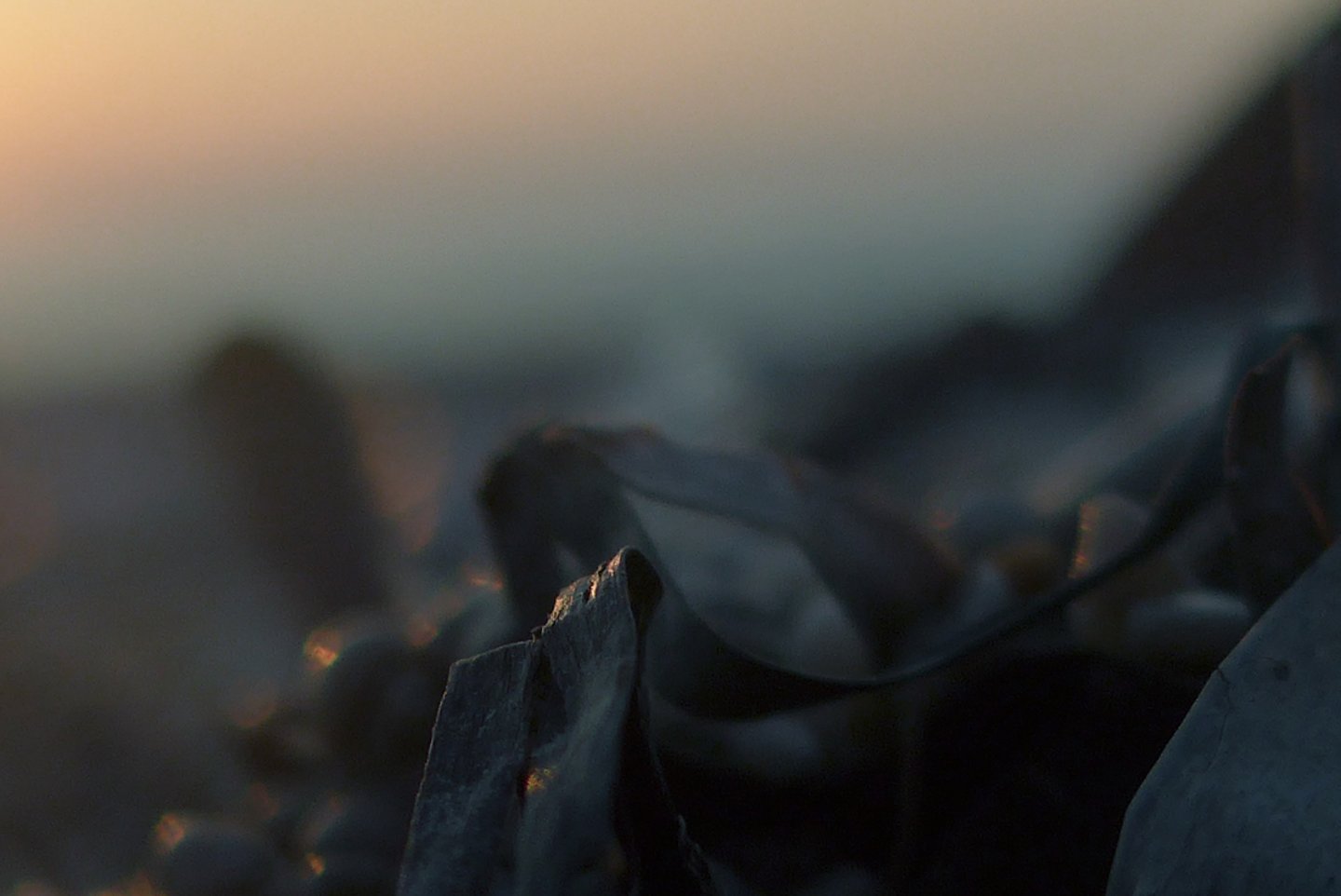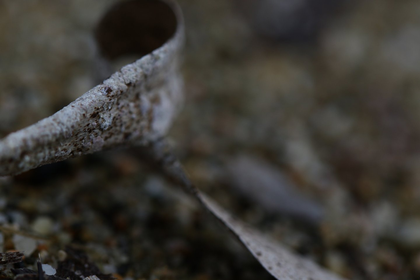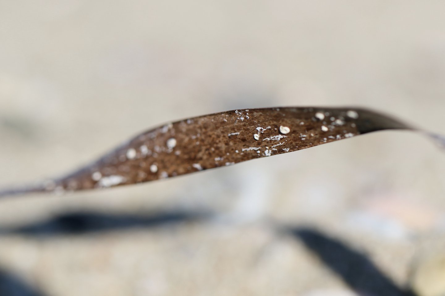 L'occhio si muove dal dettaglio cristallino delle fibre a fuoco verso la resa più impressionista dello sfondo. Particolare attenzione è rivolta al punto in cui l'alga incontra la sabbia. Sono momenti liminali — la soglia tra mobilità e stasi, organico e inorganico, vivente e inerte.