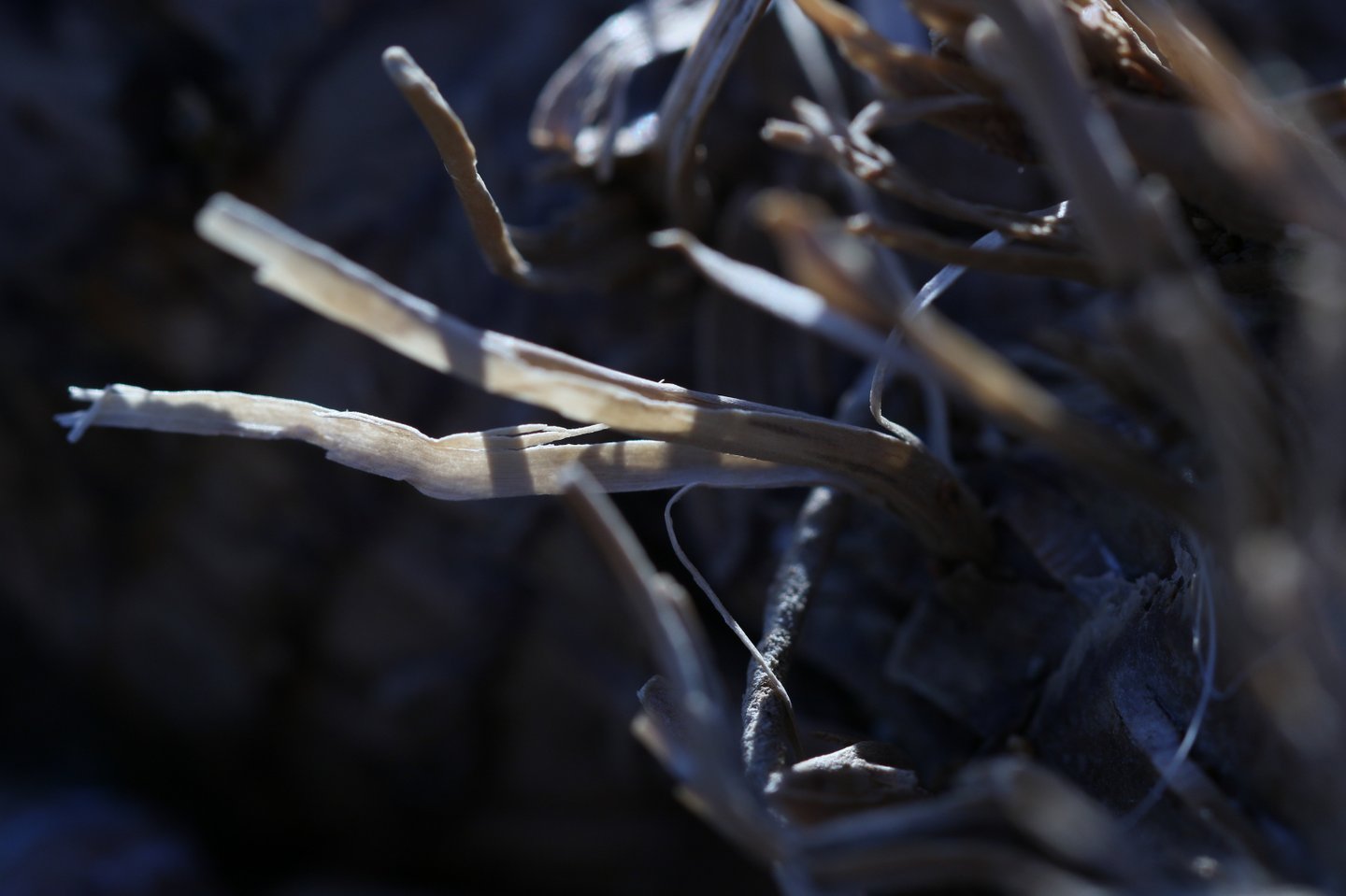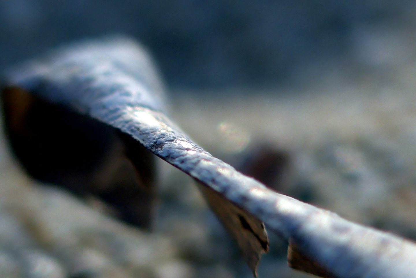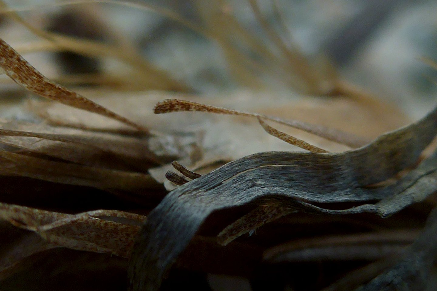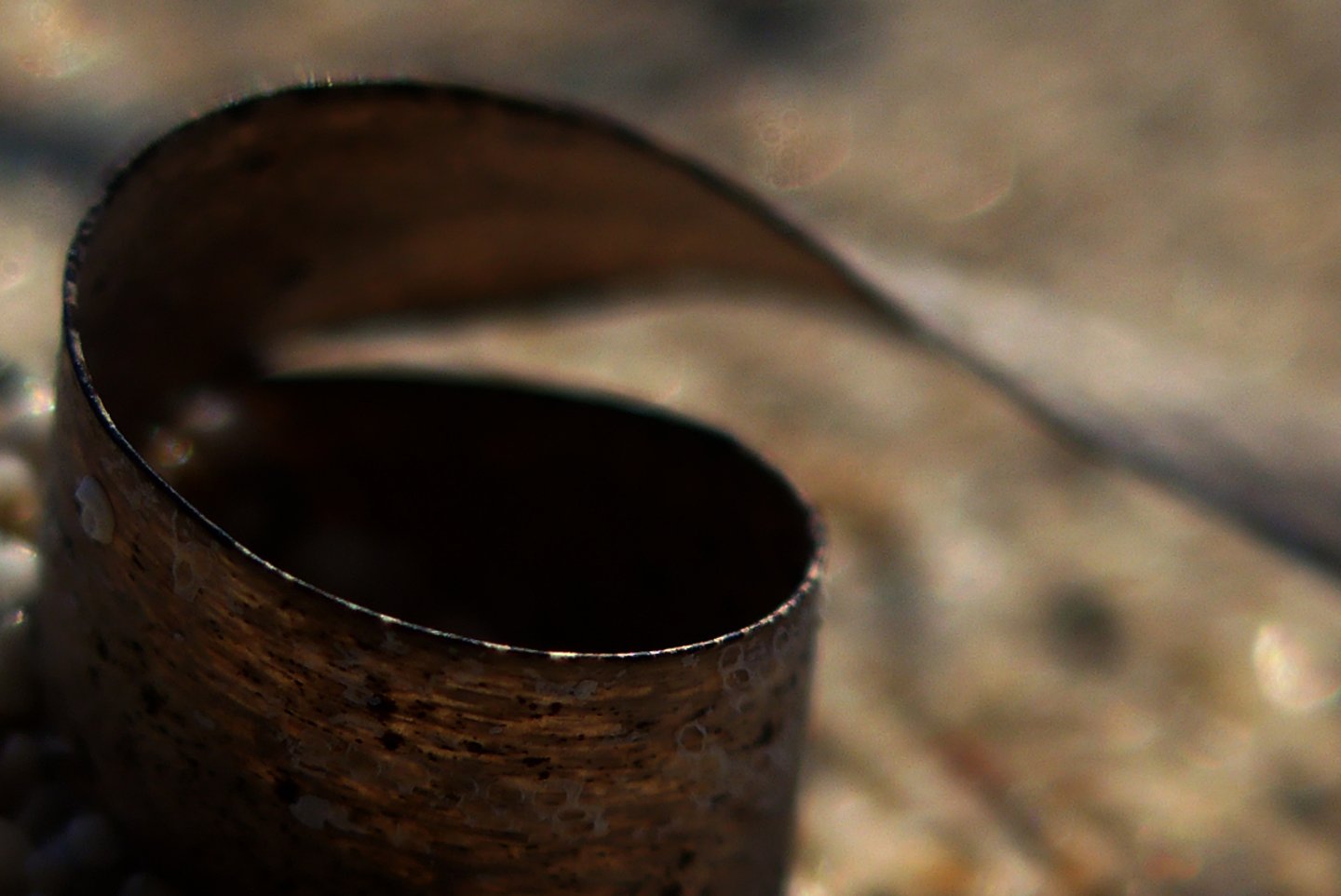 L'occhio si muove dal dettaglio cristallino delle fibre a fuoco verso la resa più impressionista dello sfondo. Particolare attenzione è rivolta al punto in cui l'alga incontra la sabbia. Sono momenti liminali — la soglia tra mobilità e stasi, organico e inorganico, vivente e inerte.