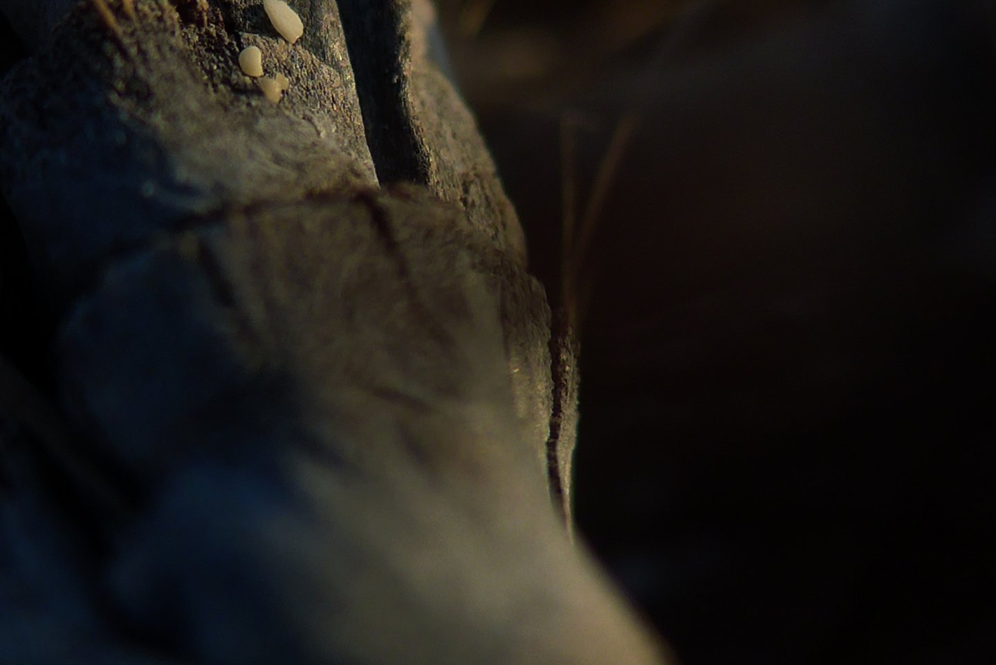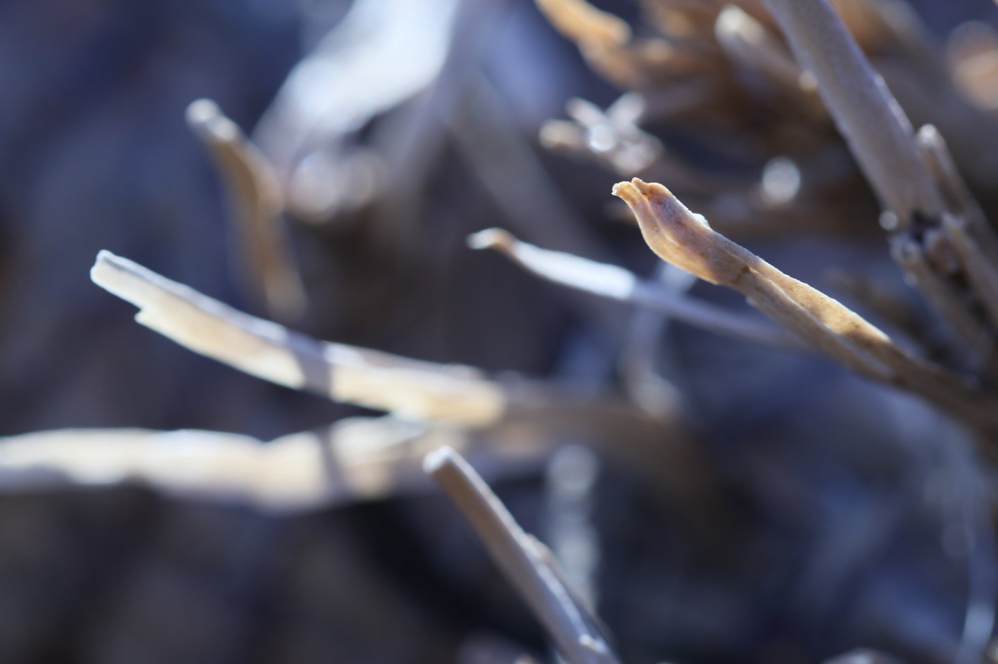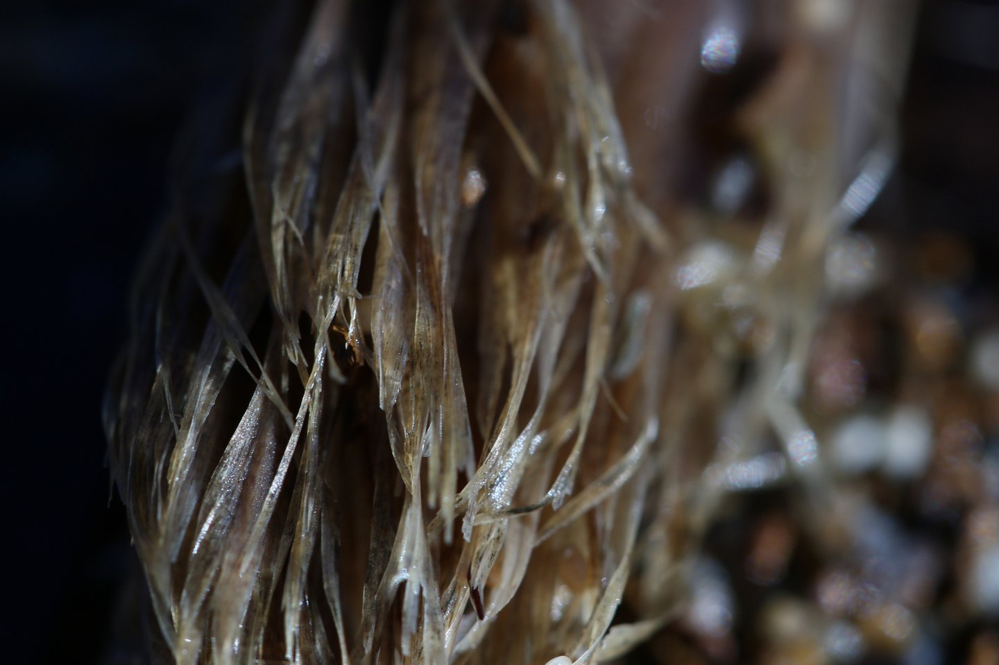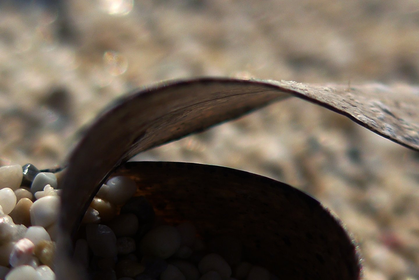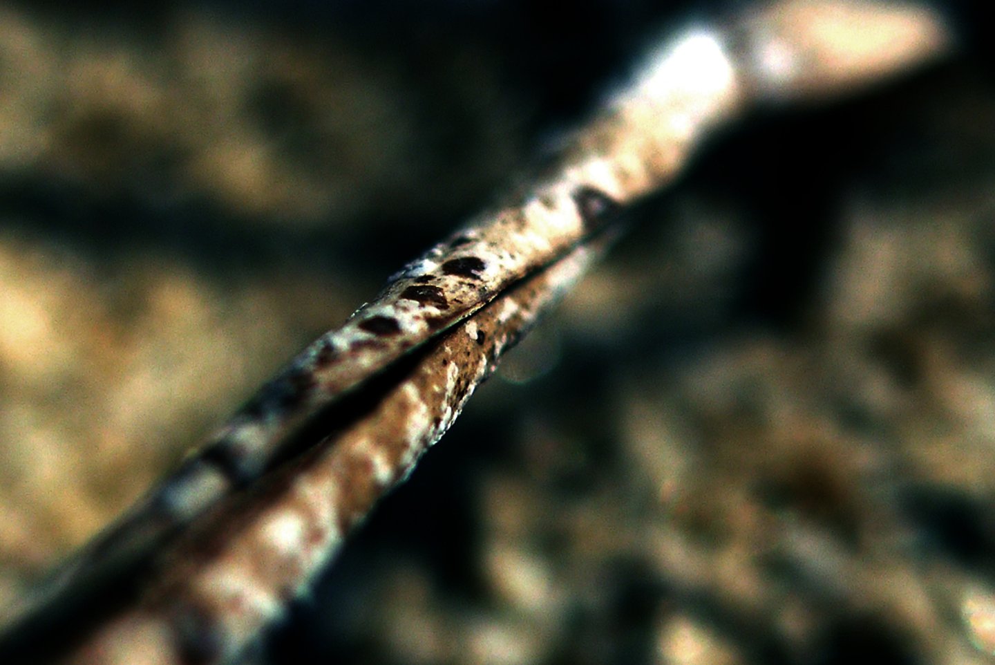 L'occhio si muove dal dettaglio cristallino delle fibre a fuoco verso la resa più impressionista dello sfondo. Particolare attenzione è rivolta al punto in cui l'alga incontra la sabbia. Sono momenti liminali — la soglia tra mobilità e stasi, organico e inorganico, vivente e inerte.