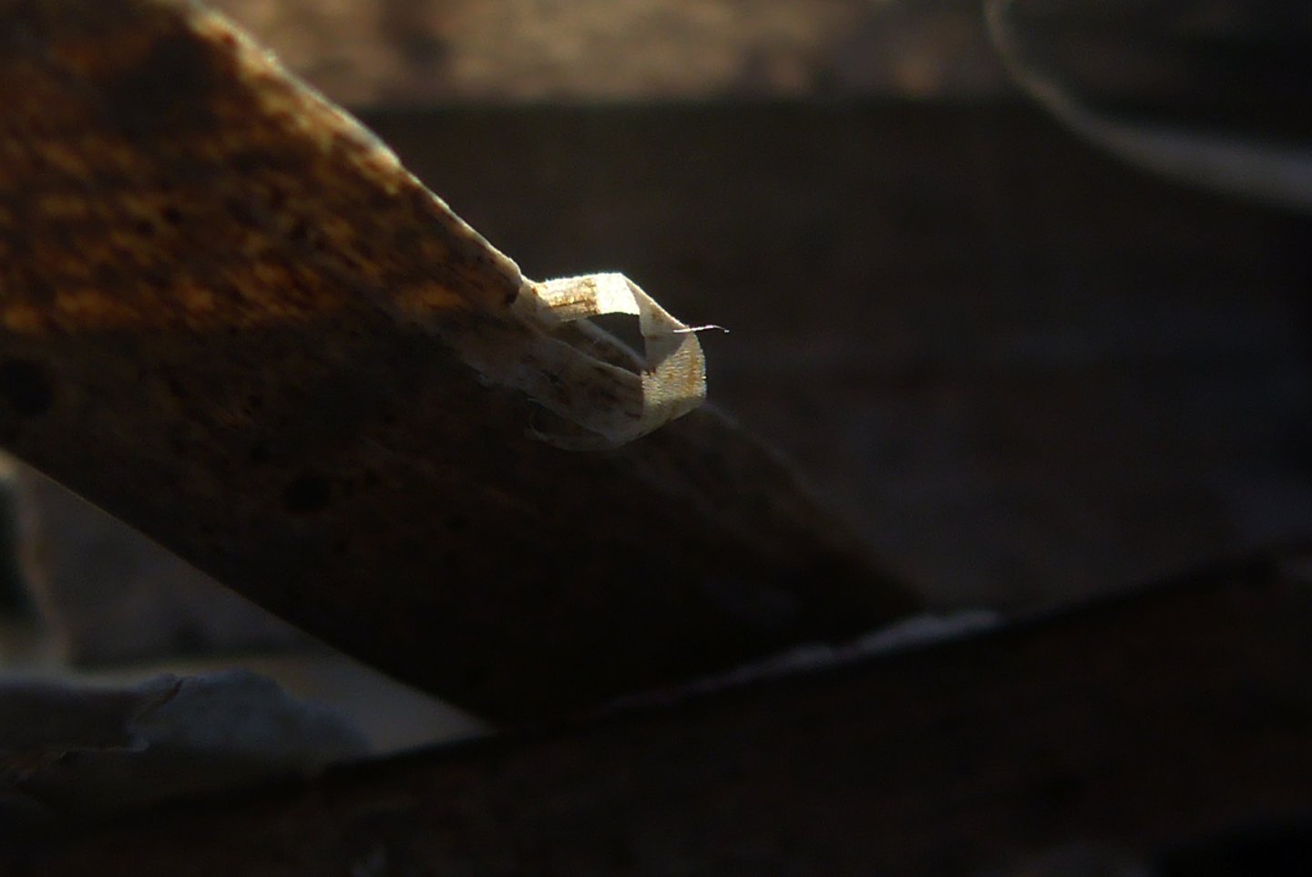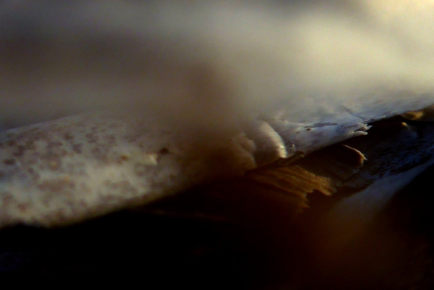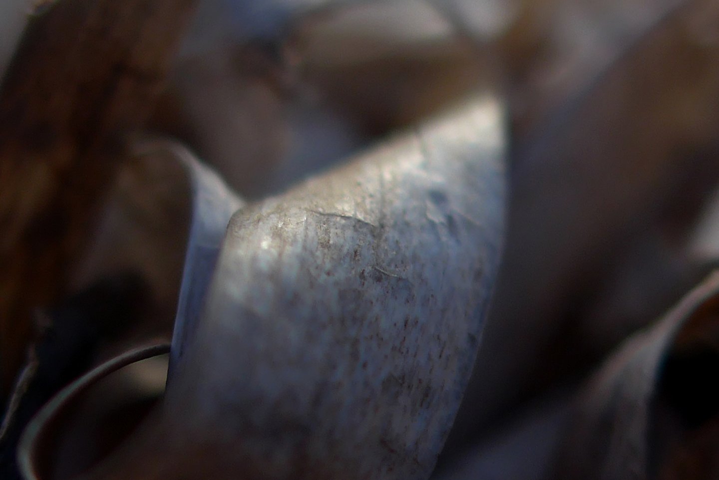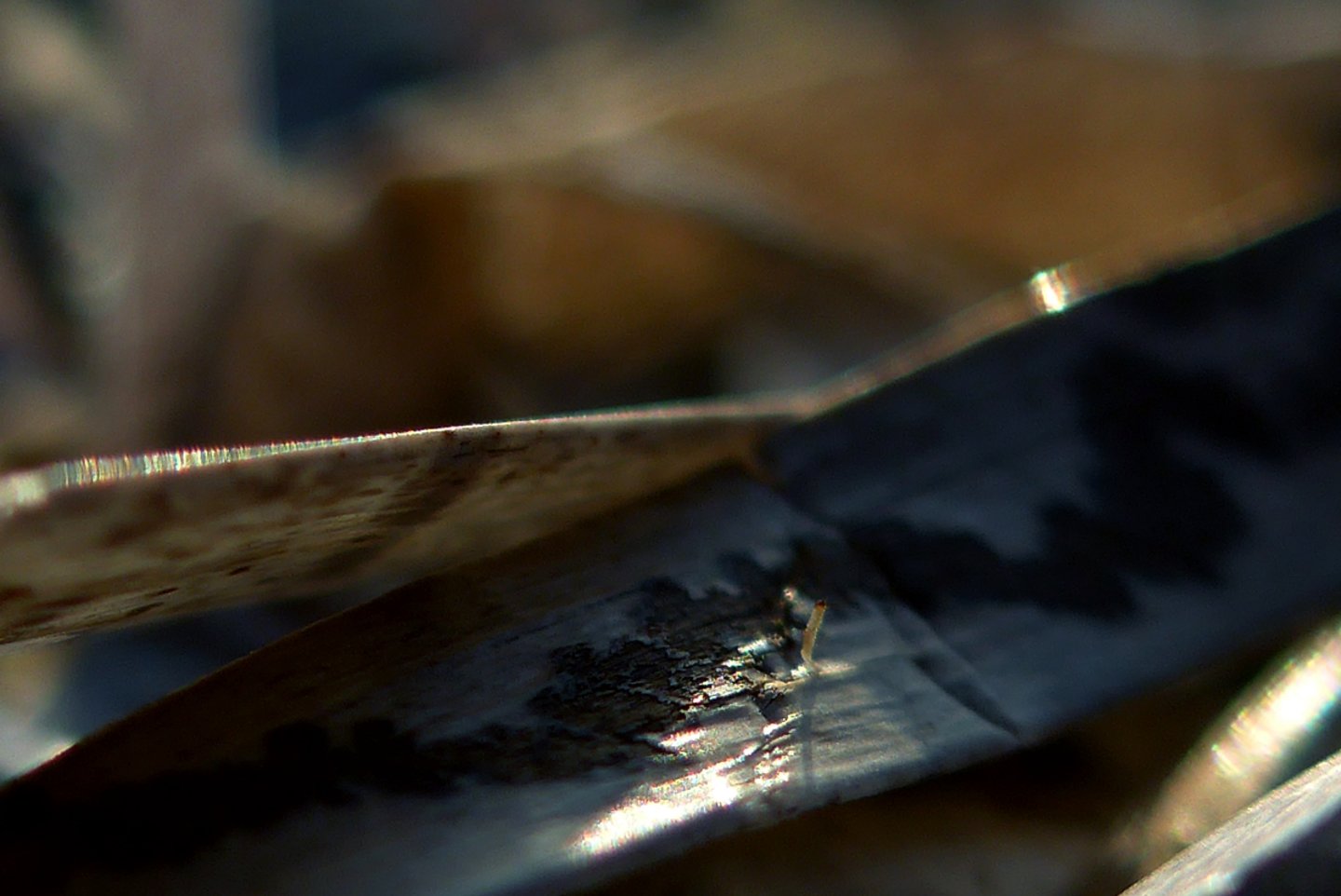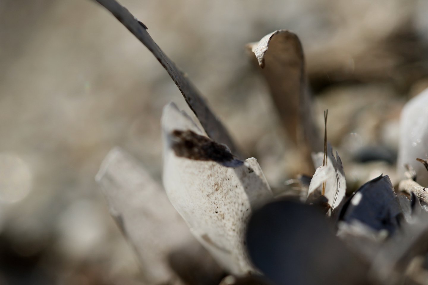 L'occhio si muove dal dettaglio cristallino delle fibre a fuoco verso la resa più impressionista dello sfondo. Particolare attenzione è rivolta al punto in cui l'alga incontra la sabbia. Sono momenti liminali — la soglia tra mobilità e stasi, organico e inorganico, vivente e inerte.