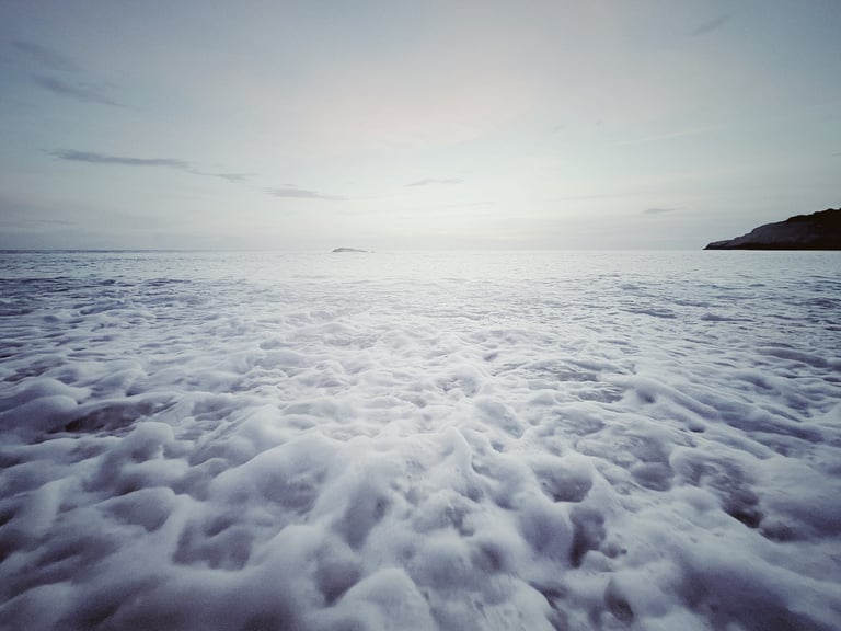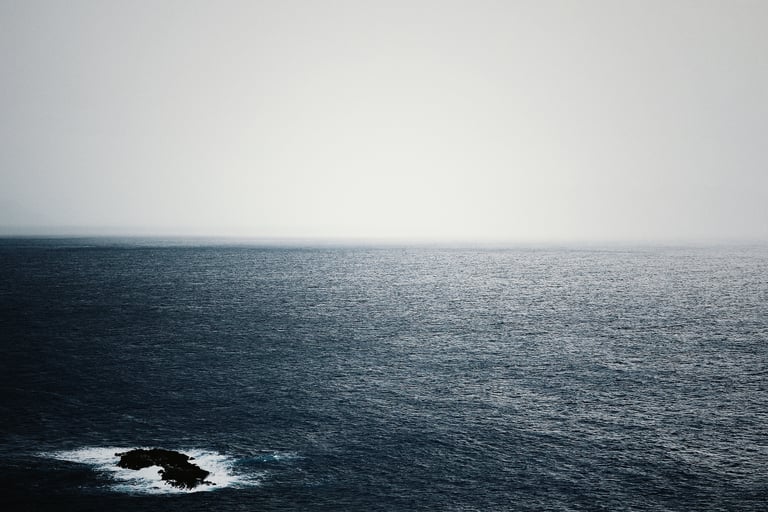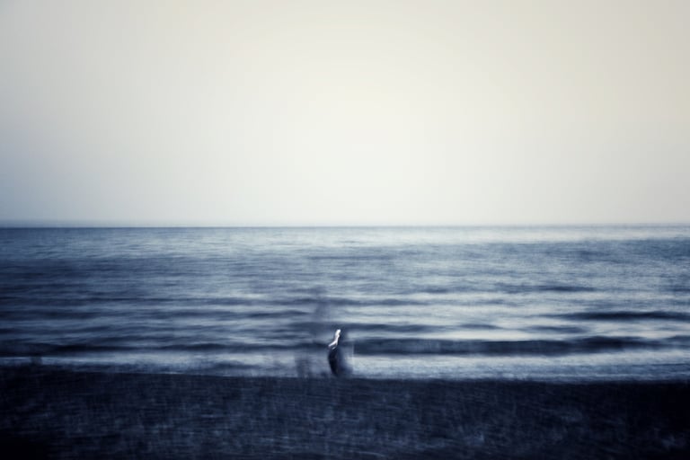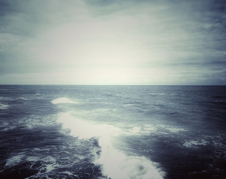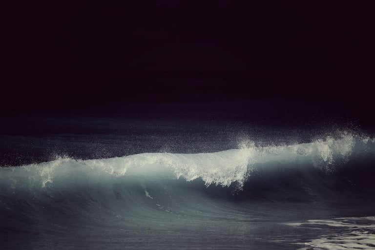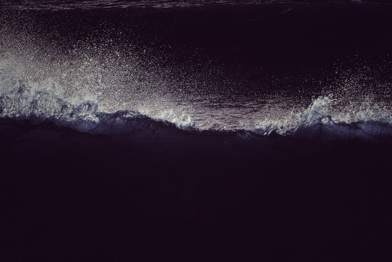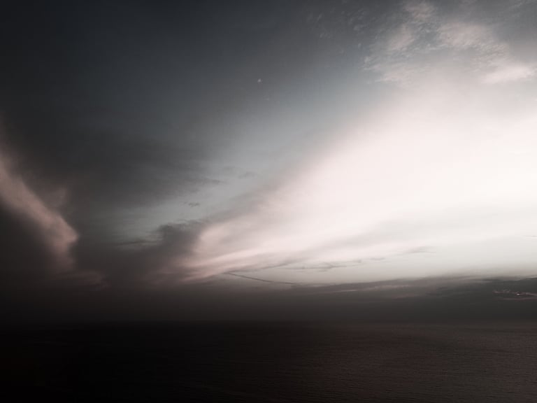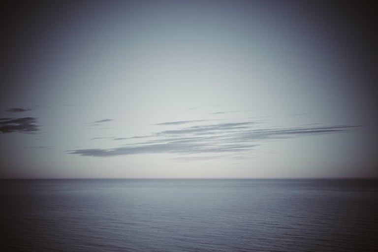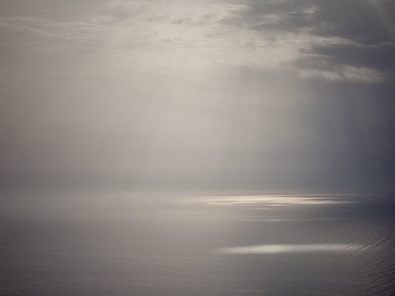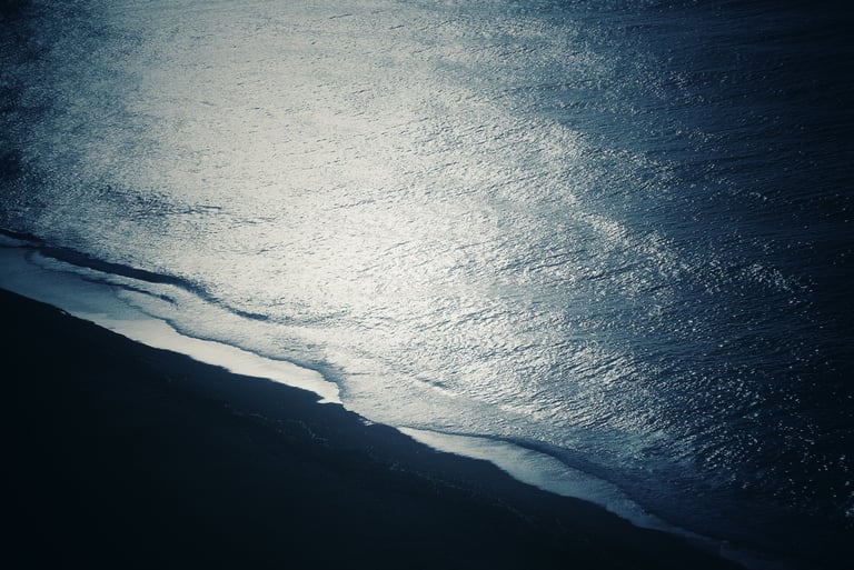 The management of light is crucial to the work’s emotional range. Rather than the warmth of the "golden hour," the images reflect a cooler and more ambiguous illumination. The final rays touching the crests of waves, the diffused glow through the clouds—these create images that hover between presence and absence, revelation and concealment. There is a deliberate avoidance of the spectacular; light is not used to emphasize or dramatize, but to imply, to suggest, and to leave questions open. The ocean appears as force and volume, its movement constant and indifferent—a rhythm that predated and will outlast human timekeeping. Here, the sea is not a backdrop but a presence—a reminder of the forces that shape the planet on scales of time and space that transcend human perception.