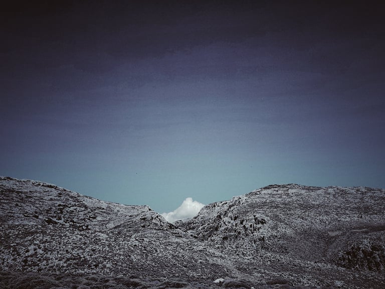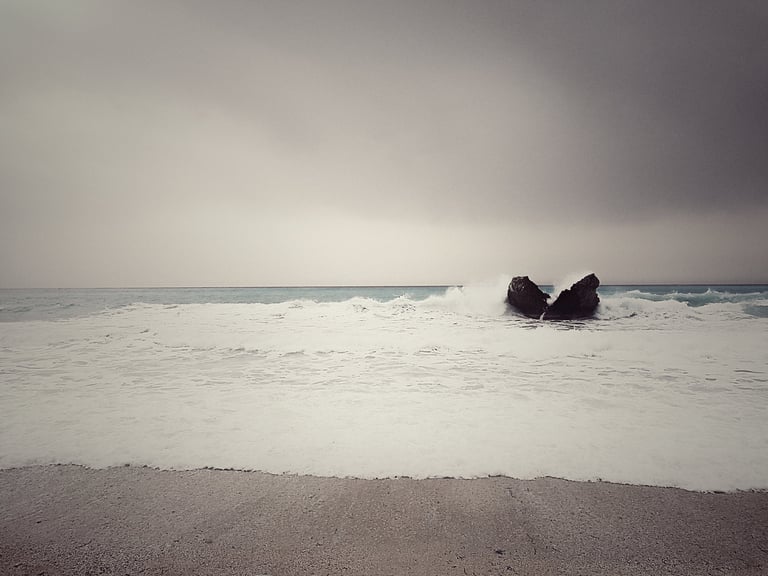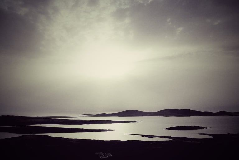 There is a meditative quality to the project’s approach, a deliberate slowing of pace that invites deep observation. This is landscape photography stripped of the "impressive," offering instead a contemplation of place as something larger and more enduring than our own passage through it. The composition is often simple, almost austere, allowing the elements themselves—water, mountain, sky, rock, wave—to speak without decorative interventions.