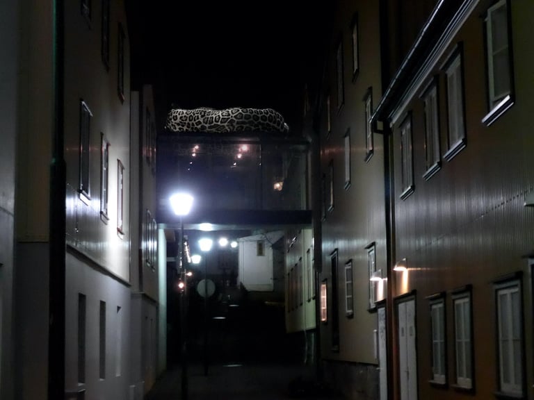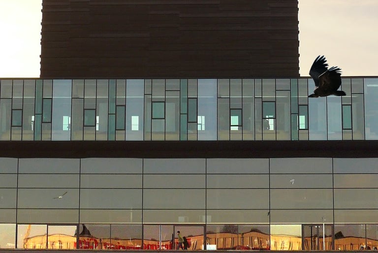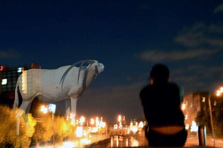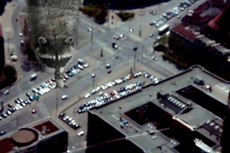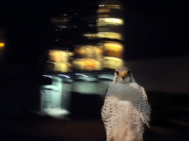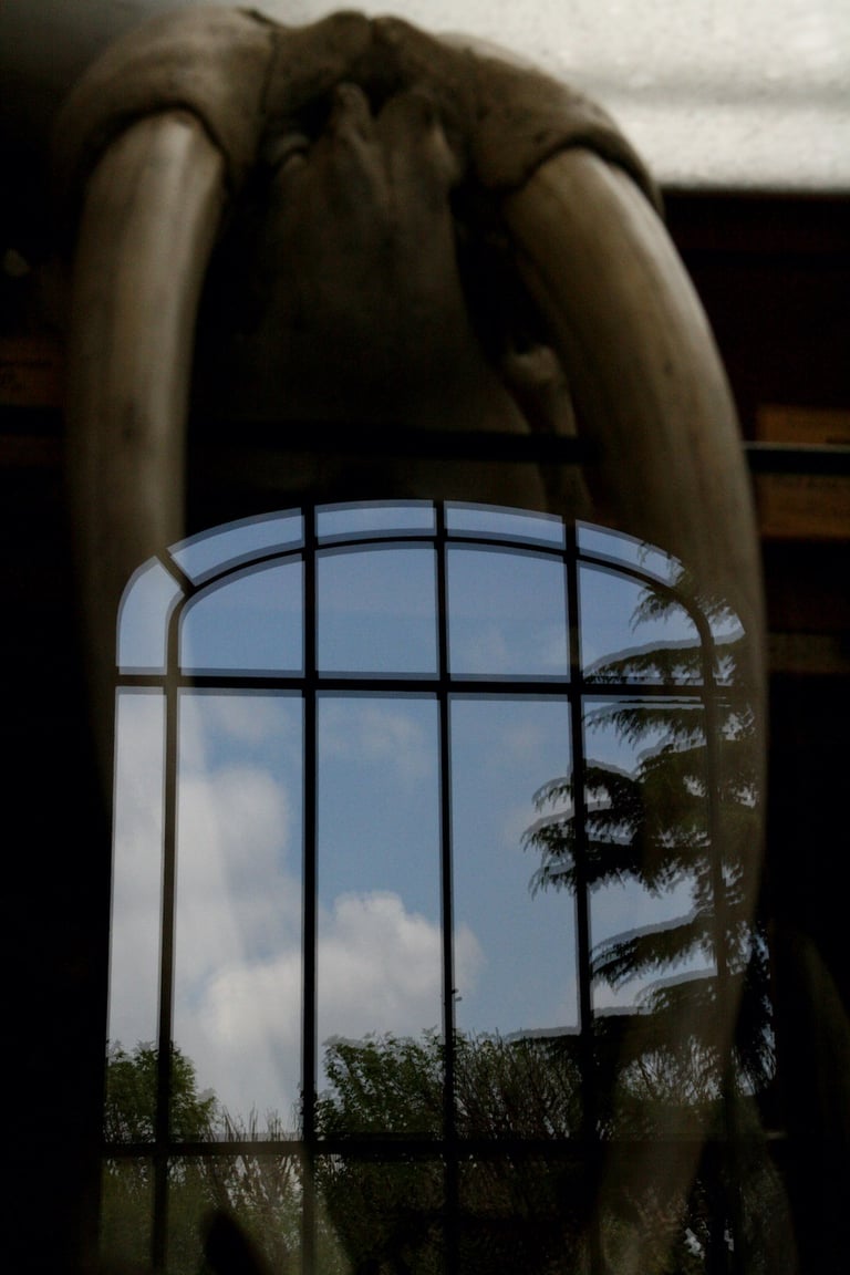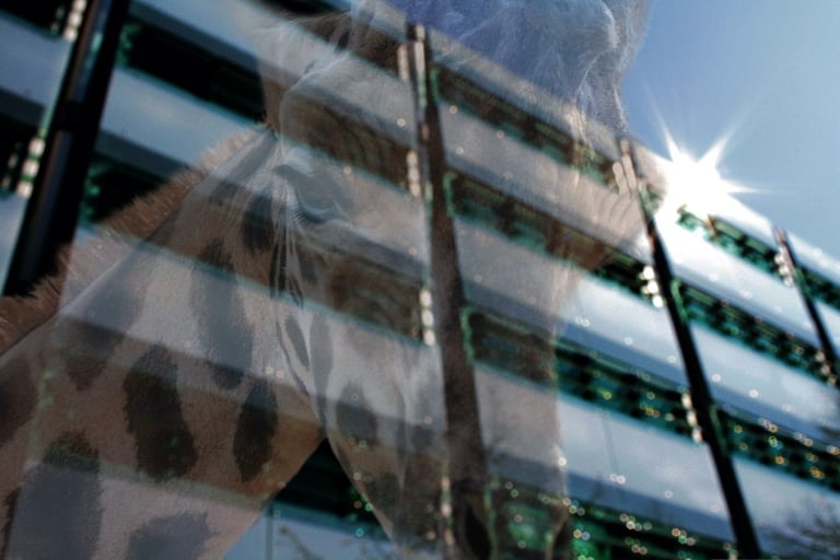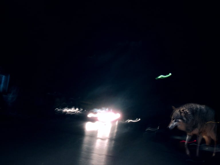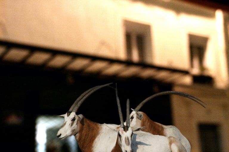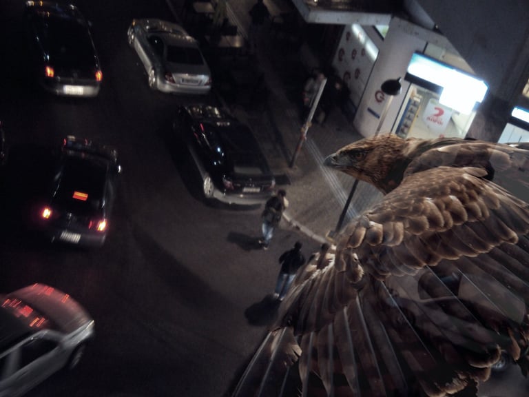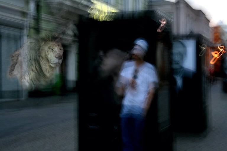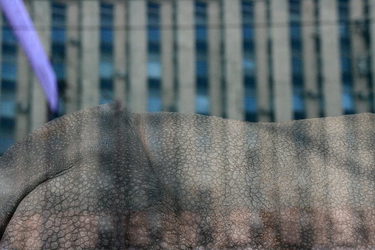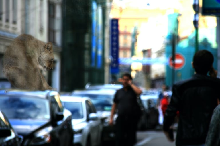 The visual dialogue in this photographic series articulates a profound tension between the organic and the constructed, between what is wild and the manifestations of urbanity. The compositional framework presents, on the one hand, an image of megafauna in a dreaming way that recalls both our fears and instincts and the sublime cityscape of the modern cities. These creatures function as visual signifiers of primordial vitality, their corporeal presence encoded with kinetic energy and an almost sculptural monumentality. The fluidity of their movement, captured in these images, evokes both the aesthetic categories of the beautiful and the terrible, oscillating between reverence and apprehension in the viewer's phenomenological encounter.